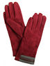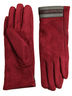 Женские трикотажные демисезонные перчатки бордового цвета с отделкой кожаными ремешками на запястье. Перчатки из полиэстера, имитирующего замшу. Внутренний слой трикотажного полотна перчатки - длинноворсовый флис.