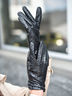 Перчатки кожаные женские демисезонные Venera черного цвета. Перчатки из натуральной кожи на шелковой подкладке. Длина перчатки классическая средняя. Тыльная сторона перчатки декорирована орнаментом, выполненным методом перфорации. Перчатки сшиты внутренним машинным швом, подкладка с перчаткой сшита ручным швом.
