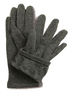 Женские трикотажные демисезонные перчатки из шерсти серого цвета с отделкой из ворсовой ткани по тыльной стороне ладони и кожаными ремешками с бантиком на запястье. Внутренний слой трикотажного полотна перчатки - длинноворсовый флис.
