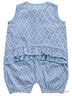 Нежный песочник с рисунком из 100% хлопка, округлый вырез горловины оформлен маленьким бантом, застежка на 3-х пуговицах, сзади рюши. Прекрасный вариант для повседневной носки.