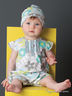Нежный песочник с рисунком из 100% хлопка, округлый вырез горловины оформлен вертикальными рюшами, застежка на 3-х пуговицах. Прекрасный вариант для повседневной носки.