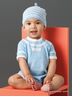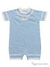 Замечательный песочник машинной вязки из 100% хлопковой пряжи нежно-голубого цвета отлично подойдет Вашему ребенку. Вырез и рукава отделаны небольшим кантом, на груди маленький кармашек. Модель имеет короткий рукав, застежку по косой линии на пуговицы и на 3 кнопки по шаговому шву.