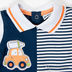 Удобный песочник для мальчика. Детали: отложной воротник, застежка на кнопки, короткие рукава, спереди накладной карман, полочка украшена набивным принтом и вышивкой.