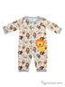 Очаровательный песочник свободного кроя, с округлым вырезом горловины и длинными рукавами. Предусмотрена удобная застежка на кнопки. Изделие украшено контрастным принтом.