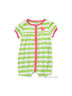 Замечательный песочник с короткими рукавами и округлым вырезом горловины. Застегивается на кнопки. Изделие украшено контрастным декором.