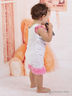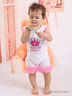 Чудесный песочник с короткими рукавами и округлым вырезом горловины. Модель дополнена кнопками для удобства одевания. Проймы декорированы рюшами контрастного цвета. Спереди изделие декорировано принтом. Отличный вариант для Вашей малышки.