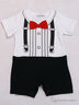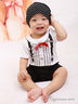Песочник с короткими рукавами и округлым вырезом горловины. Изделие выполнено из принтованной ткани контрастной расцветки. Кнопки для удобства одевания. Отличный вариант на каждый день.