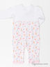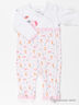 Повседневный песочник для девочки. Округлый вырез горловины, длинные рукава. Спереди застежка на кнопки. Модель украшена рюшами и нашивкой.