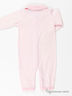 Нежный песочник для девочки. Отложной воротник, длинные рукава. Спереди застежка на кнопки. Модель украшена оригинальными нашивками.