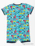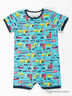 Оригинальный песочник для мальчика. Округлый вырез горловины, короткие рукава. Снизу и спереди боди-застежка на кнопки.