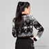 Укороченный жакет с круглым вырезом горловины, застегивающийся на две верхние петельки. Жакет выполнен в модном "скандинавском" стиле и декорирован цветком со стразом.