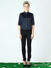 Стильный пиджак из темно-синей костюмной ткани с гипюровой спинкой. Воротник стойка, спереди застежка на пуговицы, по плечам погоны. Длина изделия около 50 см. Рукава модели длиной 3/4. Отличный вариант на каждый день для уверенных в себе леди.