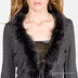 Стильный кардиган из вязаного трикотажа, застежка-поясок. По краю оборка из искусственного меха.