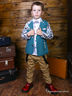 Стильный пиджак для мальчика, из комбинированных тканей на подкладке. Втачной рукав, с открытым отложным воротником, застёгивающимися на пуговицы полами, два боковых кармана. Слева и справа на груди: имитация карманов (молния и планка). На спинке из пестрой ткани, аппликация в виде стрелки "Вперед". Брутально, стильно, солидно!!!!
