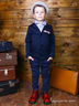 Стильный пиджак для мальчика, из трикотажного полотна. Втачной рукав, с открытым отложным воротником ( с контрастной подшивкой на обратной стороне воротника, что позволяет приподнимать его стойкой), застёгивающимися на пуговицы полами, два накладных кармана. Слева на груди - декоративное металлическое украшение, в виде медалей. Брутально, стильно, солидно!!!!
