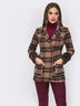 Двубортный теплый пиджак приталенного силуэта из пальтовой ткани в клетку. Рукава изделия декорированы съёмным, искусственным мехом. Модель с подкладкой. Для удобства в носке предусмотрены накладные карманы по полочке.