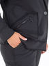 Однобортный женский пиджак Брендон слегка прилегающего силуэта. Отложной воротник, линия плеча обработана швом с открытым срезом. На бортах накладные карманы, оформленные широкими молниями. Остроконечные лацканы, необработанные края. Застегивается на пуговицу. Длина изделия: 64 см. Длина рукава: 50 см. Параметры модели на фото: 106*80*115.