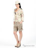 Детали: отложной воротник с лацканами, рукава 3/4, спереди 3 накладных кармана, сзади шлица