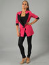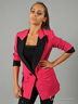 Детали: отложной ворот, рукав длинный, застежка на двух пуговицах, три врезных кармана с листочками, подплечики держат форму плеча.