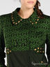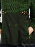 Оригинальный пиджак трапеция насыщенного зеленого цвета напоминает о модных сегодня 60-х, бурных и смелых. Женственный отложной воротник с закругленными краями. Застегивается на крупные пуговицы. По бокам декоративный пояс. Два прорезных кармана на молнии. Декорирован бронзовыми клепками, что придет ему изысканную экстравагантность.