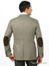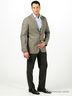Детали: пиджак с одним шлицом, отложной ворот с вставкой из отделочной ткани с внутренней стороны, рукав длинный декорирован заплаткой из отделочной ткани, застежка на пуговицах, два прорезных кармана с клапаном, один прорезной нагрудный карман с листочком, три внутренних прорезных кармана.