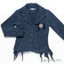 Детали: отложной ворот с лацканами, отрезной лиф со сборками, застежка на пуговицы, манжеты - трикотажные резинки, полочка декорирована брошью, задняя часть украшена оригинальными оборками