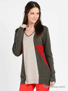 Пуловер Attesa женский, цвет серо-бежевый / вишневый