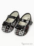Верх выполнен из саржевой ткани в крупную клетку и декорирован бантом. Застежка на ремешок на липучке. Подошва тонкая, рельефная.
