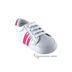 Белые пинетки, стилизованные под кроссовки, с отделкой из цветных полосок. Удобно и прочно сидят на ножке малыша, не сдавливая её, не мешая естественному развитию стопы.