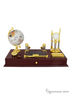 Письменный набор 41 см (глобус, часы, ручка, нож, лупа, держатель для бумаг, для визиток). Коллекция торговой марки Shuai представлена настольными деревянными часами, письменными наборами, подставками для вина и бокалов, сувенирами. Качественные сырье и тонкая финишинговая обработка, включающая ручную тонировку, золочение, вощение и лакировку, позволяют создавать изделия представительского класса. Любой предмет коллекции - прекрасный подарок для мужчины и красивый предмет для декора интерьера.