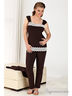 Пижама состоит из двух предметов: топ и брюки. Изделия свободного кроя выполнены из качественного материала привлекательной расцветки. Отличный вариант на каждый день.
