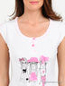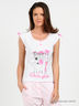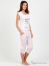 Детали: футболка - круглый вырез окантован контрастной рюшей; застегивается на пуговицы; короткий рукав; на полочке аппликация с пайетками; бриджи - застегиваются на пуговицы; два втачных кармана; оригинальный принт; низ изделия на резинке