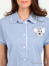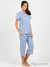 Детали: рубашка - отложной ворот; короткий рукав; застегивается на пуговицы; на полочке аппликация и стразы; бриджи - застегиваются на пуговицы; два втачных кармана; пижама декорирована принтом - полоска
