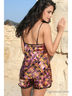 Пижама, состоящая из топа и шорт. Топ полуприлегающего силуэта выше уровня бёдер выполнен из натурального шёлка с дизайнерским фотопринтом. Вдоль верхнего края окантовка. Спереди V-образный вырез, украшенный бантиком. Тонкие регулирующиеся бретели. Сзади открытая прямая спинка. Короткие шорты выполнены из натурального шёлка. По талии на резинке. По низу окантовка. В боковых швах по низу маленькие закругленные разрезы с бантиками.