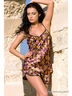 Пижама, состоящая из топа и шорт. Топ полуприлегающего силуэта выше уровня бёдер выполнен из натурального шёлка с дизайнерским фотопринтом. Вдоль верхнего края окантовка. Спереди V-образный вырез, украшенный бантиком. Тонкие регулирующиеся бретели. Сзади открытая прямая спинка. Короткие шорты выполнены из натурального шёлка. По талии на резинке. По низу окантовка. В боковых швах по низу маленькие закругленные разрезы с бантиками.
