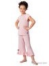 Комплект для девочек из двух предметов выполнен из высококачественной вискозы с добавлением эластана. Топ средней длины, свободного силуэта с рукавами-крылышками. Вырез по горловине оформлен бейкой, а низ рукавов - эластичным кружевом. На передней детали расположен принт черного цвета «Кот-аристократ», а на спинке - черный атласный бантик с сердечком-подвеской. Топ выполнен в розовом цвете в раппортном принте «Сердечки» черного цвета. Брюки свободного силуэта длиной ¾ с поясом запакованного типа. Низ изделия оформлен широкими оборками, эластичный кружевом и атласными бантиками. Брюки выполнены в розовом цвете с принтом в горошек черного цвета.