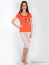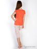 Домашняя трикотажная пижама. В комплект входят: футболка с короткими рукавами, округлый вырез, на полочке оригинальный принт, капри на резинке, с оригинальным принтом.
