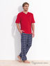 Пижама из тонкой трикотажной ткани. Футболка с коротким прямым рукавом. Брюки на резинке.