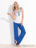 Комплект для из тонкой трикотажной ткани. Топ на тонких бретелях декорирован оборками. Брюки на резинке.