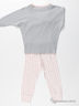 Брюки прямого силуэта выполнены из трикотажа средней плотности. В пояс вшита резинка. Брючины посажены на манжеты.