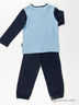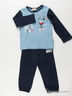Брюки прямого силуэта выполнены из трикотажа средней плотности. В пояс вшита резинка. Брючины посажены на манжеты с резинками. Изделие украшено принтами.