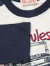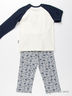 Лонгслив прямого силуэта выполнен из трикотажа средней плотности. Округлый вырез горловины, длинный рукав. Полочка украшена принтами.