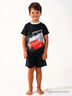 Пижама для мальчика состоит из футболки и шорт.