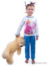 Детская пижама с брюками на эластичной резинке. Брюки свободного кроя. Лонгслив с длинными рукавами и округлым вырезом горловины. Оригинальный принт украшает изделие.