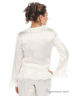 Шелковистый вечерний комплект. Прямые брюки на резинке, кофточка с круглым вырезом украшенная воланами, рукава 3/4, завязывается на тонкую атласную веревочку.
