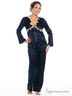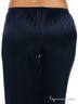Атласный шелковистый комплект, состоит из: прямых брюк на резинке и завязывающихся на веревочку, кофточка с V-образным вырезом и украшенная бежевым цветочным принтом, застегивается на перламутровые пуговицы.