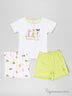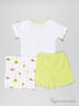 Стильная пижама прямого кроя состоит из двух предметов. Майка с округлым вырезом горловины и короткими рукавами, полочка украшена принтом. Шорты с эластичной вставкой в поясе.