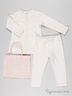 Стильная пижама прямого кроя состоит из двух предметов. Кардиган с округлым вырезом горловины и длинными рукавами, застежка на кнопки. Штаны с эластичной вставкой в поясе.