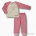 Стильная теплая пижама с звездным принтом. Верх молочный с розовыми рукавами, декорированный аппликациями и надписью. Низ розовый с звездами.