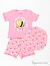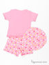 Стильная пижама прямого кроя состоит из двух предметов. Майка с округлым вырезом горловины и короткими рукавами, полочка украшена принтом. Шорты с эластичной вставкой в поясе.